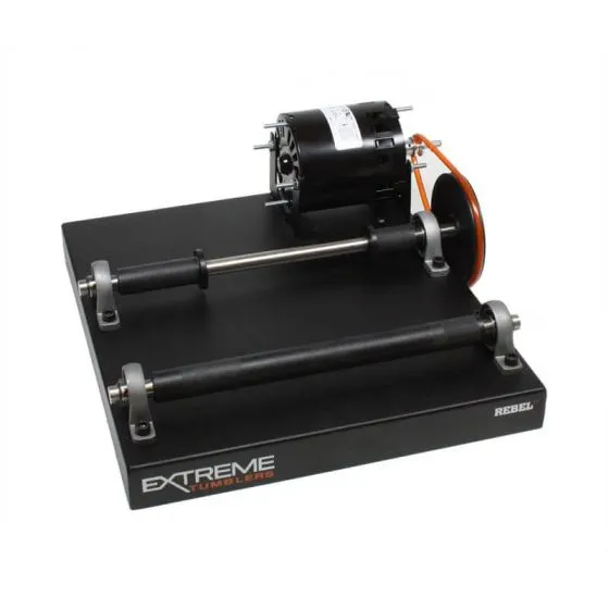 The Rebel 17 Extreme Tumbler boasts a 17-pound capacity heavy-duty stainless steel hexagon drum, with easy on/off nylon locking drum lid knobs. The integration of pillow block bearings along with a high-quality fan-cooled motor that features overload protection and operates at 1250 RPM ensures reliability and long-lasting operation. Wrapped in a sleek matte black powder coat, the Rebel 17 not only works hard but looks good doing it.