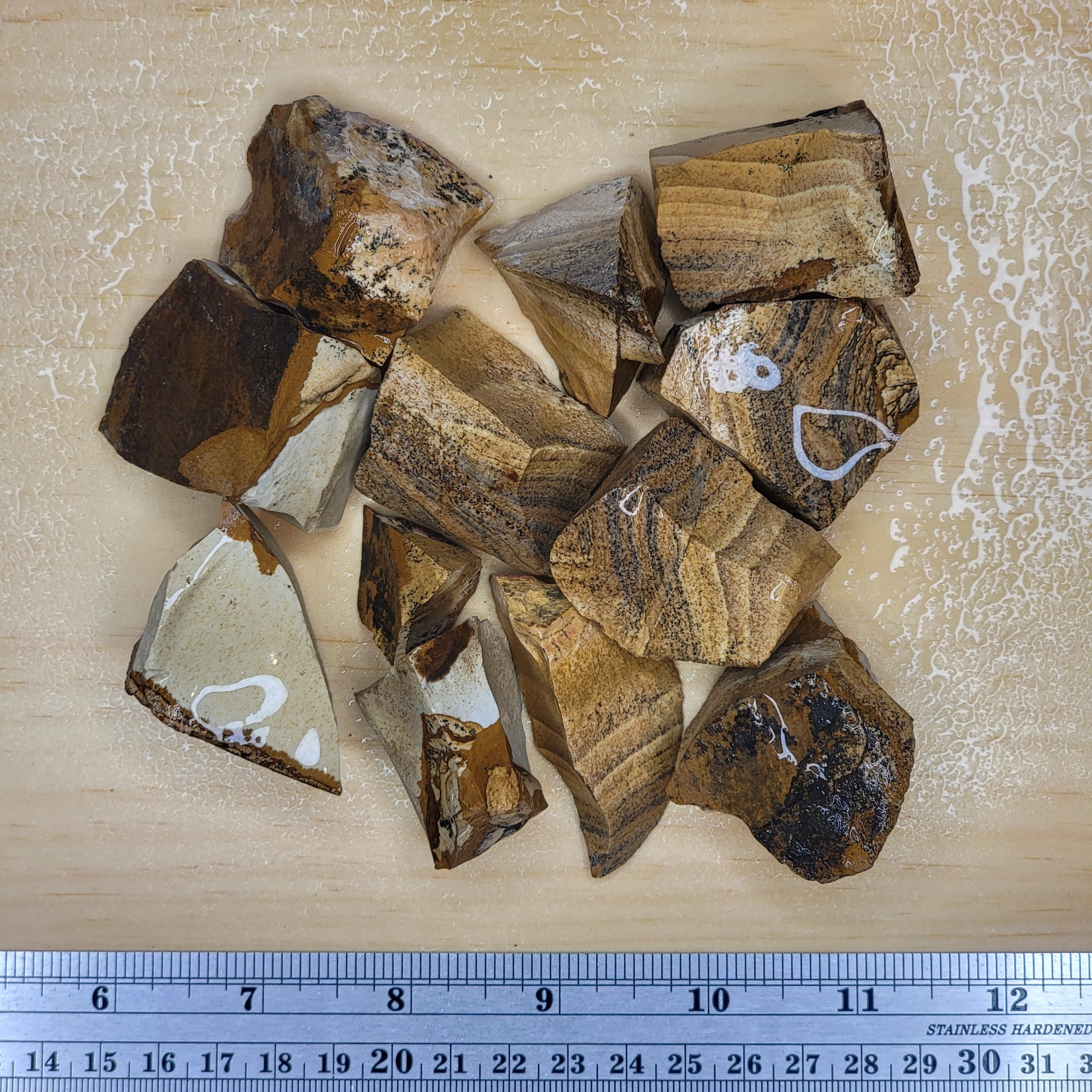 African Queen Picture Jasper rough. Approx. 1 lb shown, dry and wet to highlight colors and patterns.