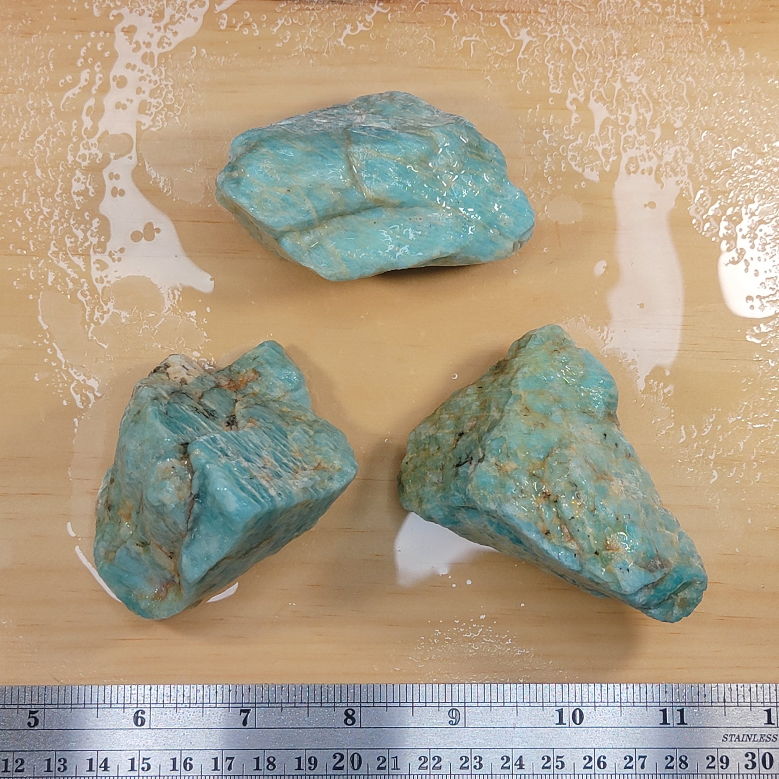 Amazonite rough. Approx. 1 lb shown, dry and wet to highlight colors and patterns.