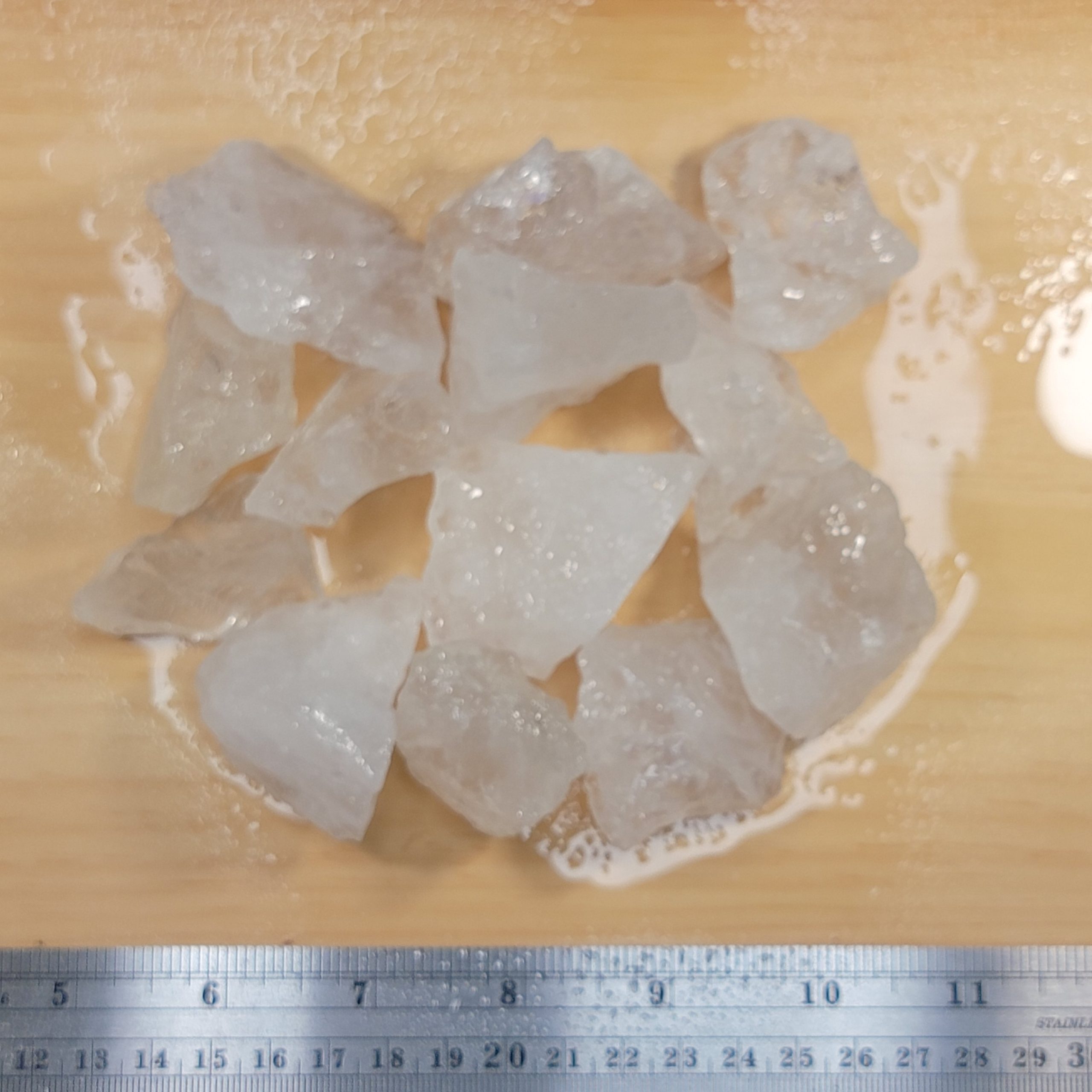 Clear Quartz rough. Approx. 1 lb shown, dry and wet to highlight patterns.