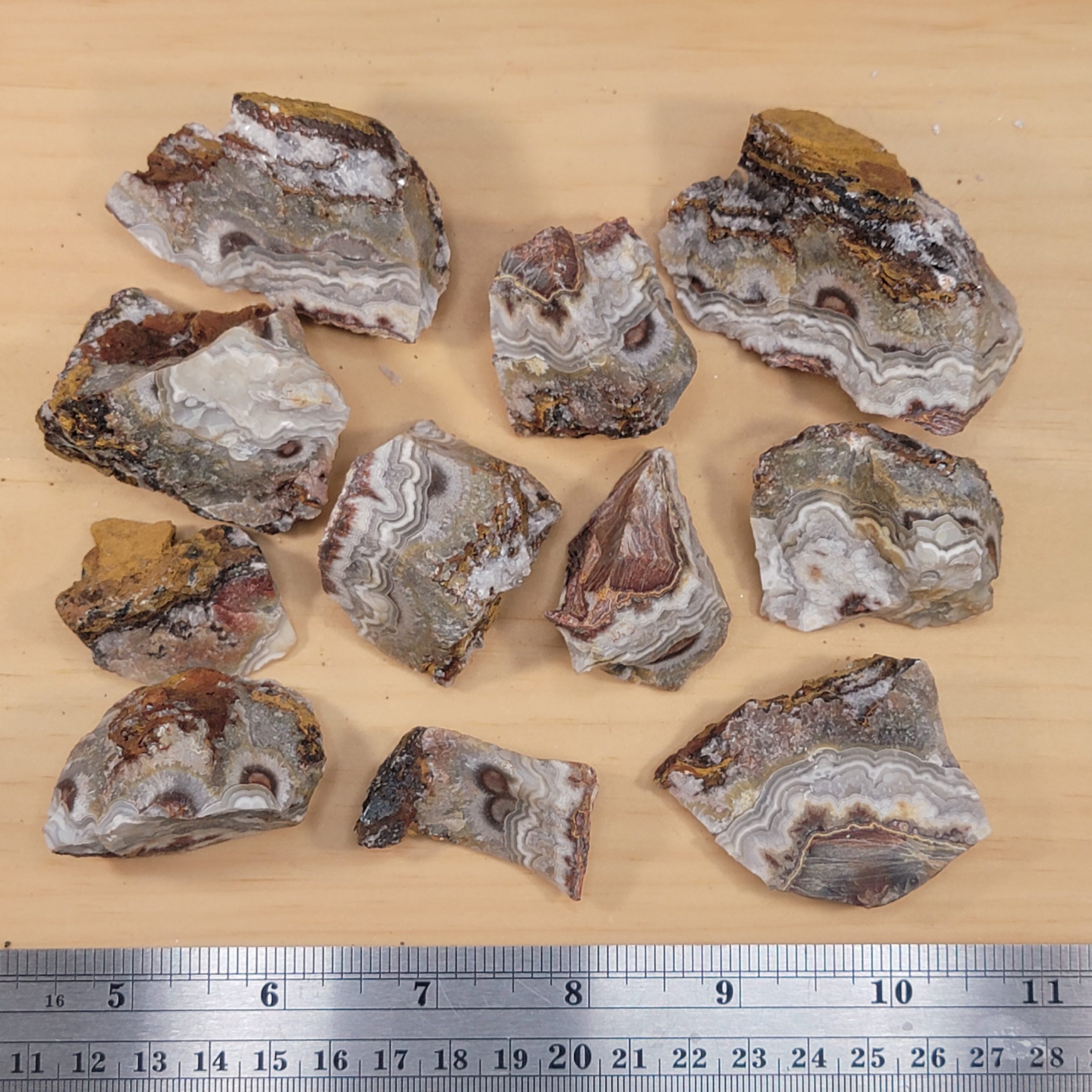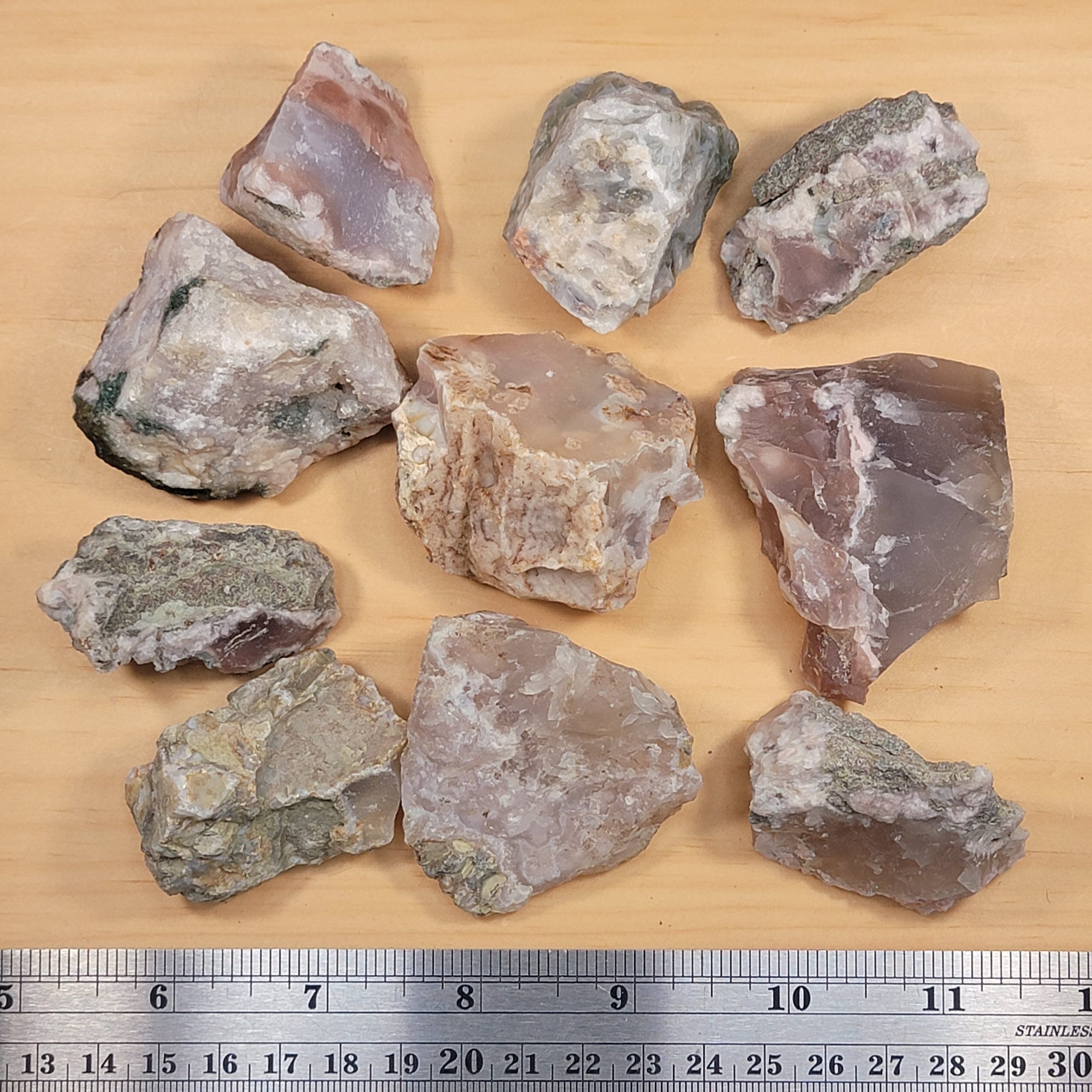 Moss Agate rough. Approx. 1 lb shown, dry and wet to highlight colors and patterns.